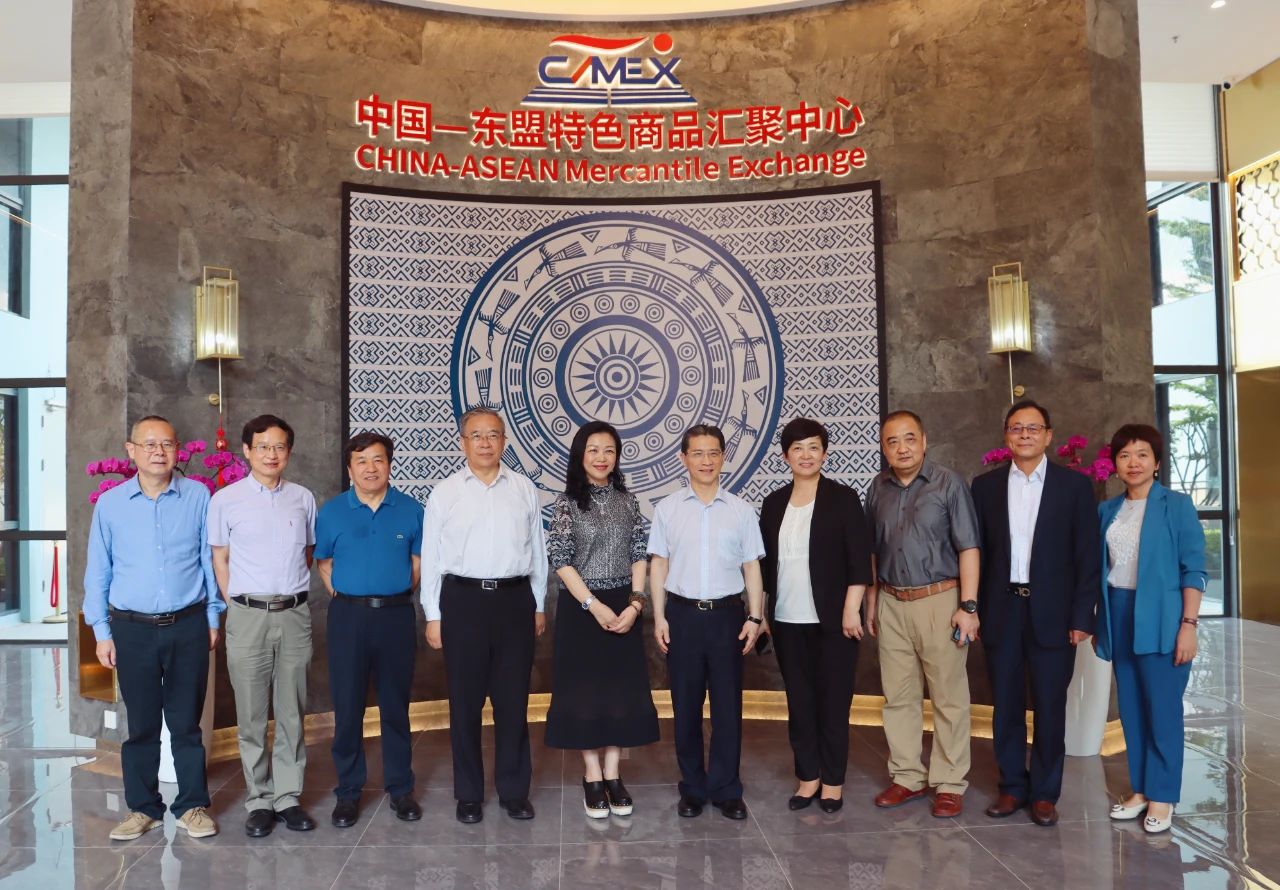 2023年5月5日,全國政協(xié)常委,上海市社會主義學(xué)院院長、廣西自貿(mào)試驗區(qū)顧委會主任委員周漢民率隊到中國—東盟特色商品匯聚中心(以下簡稱“匯聚中心”)調(diào)研并舉行座談交流。作為廣西自貿(mào)試驗區(qū)的重點項目,匯聚中心很榮幸能受到顧委會的指導(dǎo)。中國—東盟特色商品匯聚中心董事長趙海燕熱情接待了調(diào)研組一行。