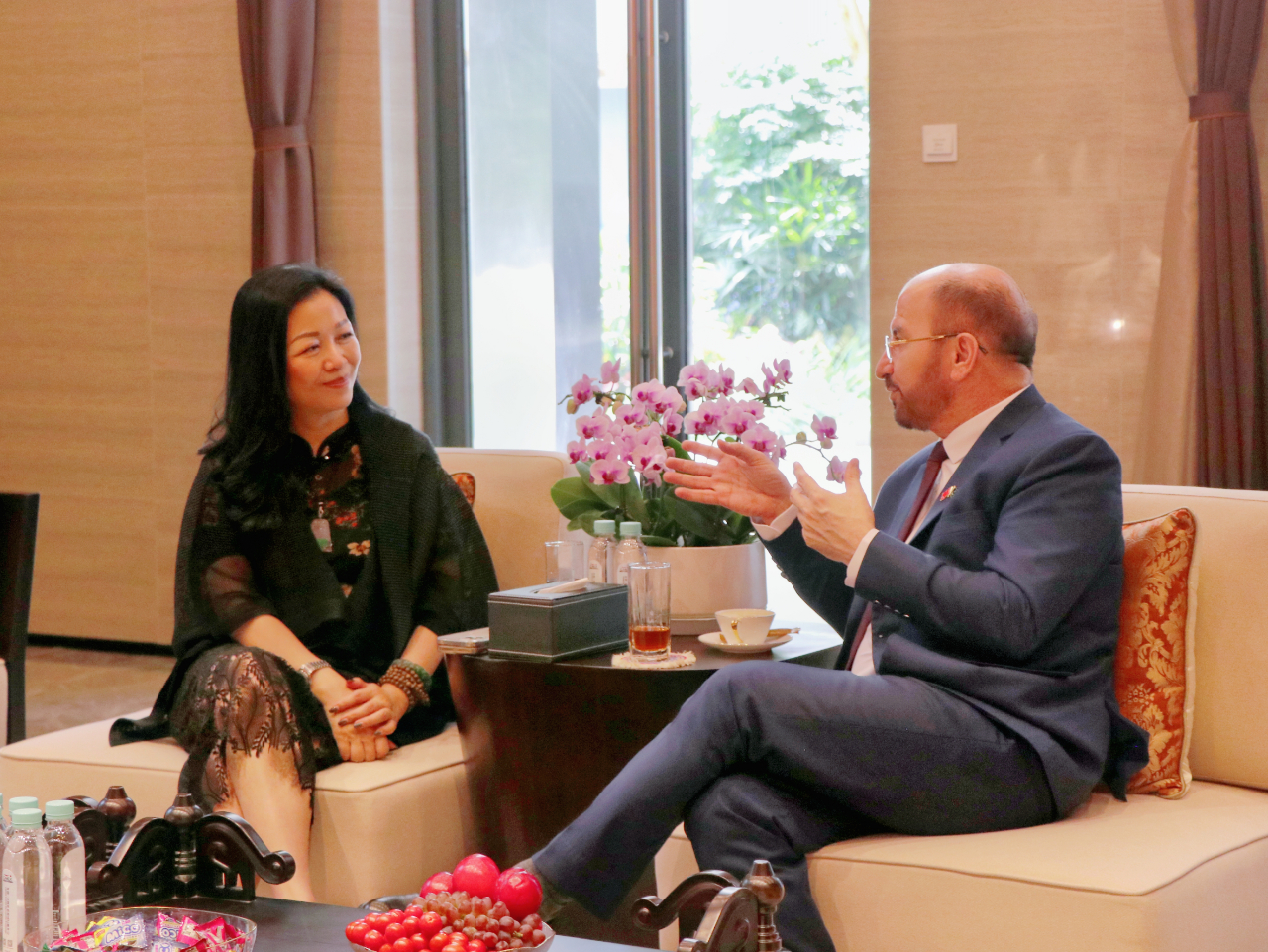 趙海燕董事長與薩達爾· 穆罕默德代理總領事在匯聚中心合影