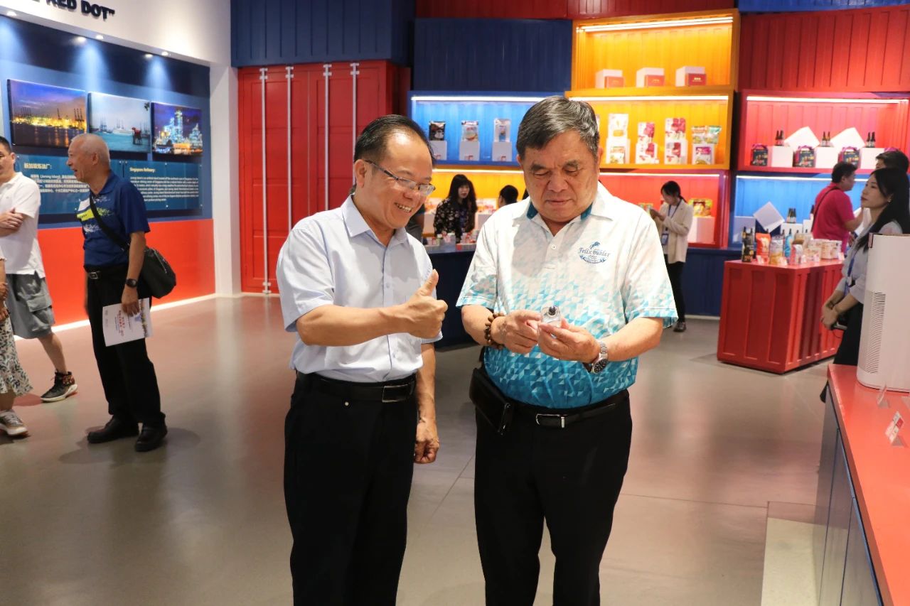 參訪團一行在參觀匯聚中心線下主題展館過程中,對館內(nèi)琳瑯滿目的特色商品表現(xiàn)出濃厚的興趣,認為匯聚中心創(chuàng)新理念非常出色,能夠通過線上下單快速配送一站式購買各式東盟、RCEP其他區(qū)域國家乃至“一帶一路”沿線重要國家的特色商品,比如新加坡的肉骨茶、印尼的咖啡、日本的清酒、澳大利亞的紅酒等,對商家及消費者來說將是一種全新的沉浸式商貿(mào)體驗。