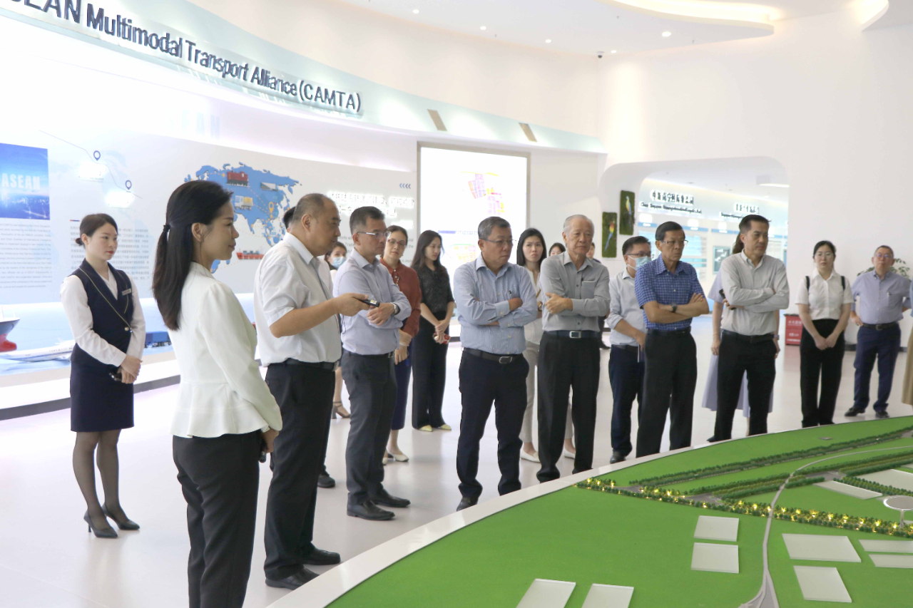 在中新物流園展示中心,考察組深入了解園區(qū)的產(chǎn)業(yè)布局及整體建設(shè)情況。由新加坡太平船務(wù)投資建設(shè)的中新物流園是廣西參與“一帶一路”及推進(jìn)中新互聯(lián)互通、西部陸海新通道建設(shè)、海洋經(jīng)濟(jì)發(fā)展重大項(xiàng)目之一,充分利用在國內(nèi)國際、特別是新加坡太平船務(wù)集團(tuán)在集裝箱海運(yùn)及物流方面等資源,帶動(dòng)更多貨物經(jīng)由北部灣進(jìn)出,拉近了中國與東盟的經(jīng)貿(mào)合作距離,吸引更多的海內(nèi)外企業(yè)來中國發(fā)展。