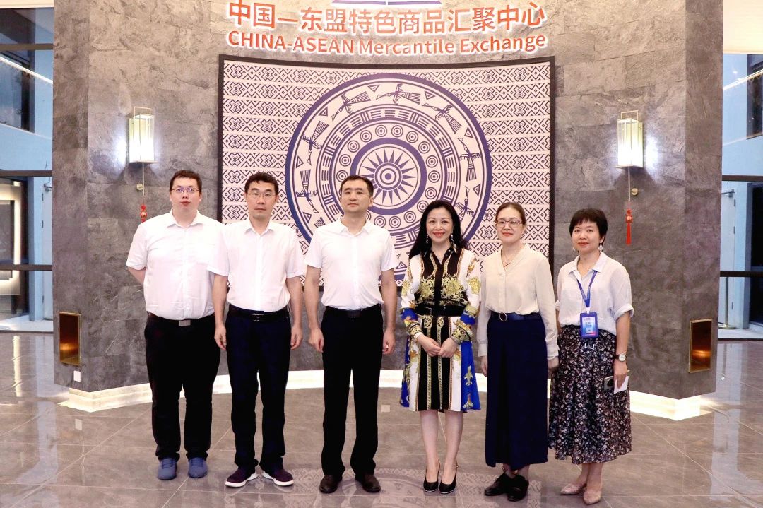 2023年7月20日下午,自治區(qū)人民政府副秘書長(zhǎng),自治區(qū)大數(shù)據(jù)發(fā)展局黨組書記、局長(zhǎng)趙志剛一行到中國(guó)—東盟特色商品匯聚中心(以下簡(jiǎn)稱“匯聚中心”)考察調(diào)研并進(jìn)行座談交流。中國(guó)—東盟特色商品匯聚中心董事長(zhǎng)趙海燕熱情接待了調(diào)研組一行。