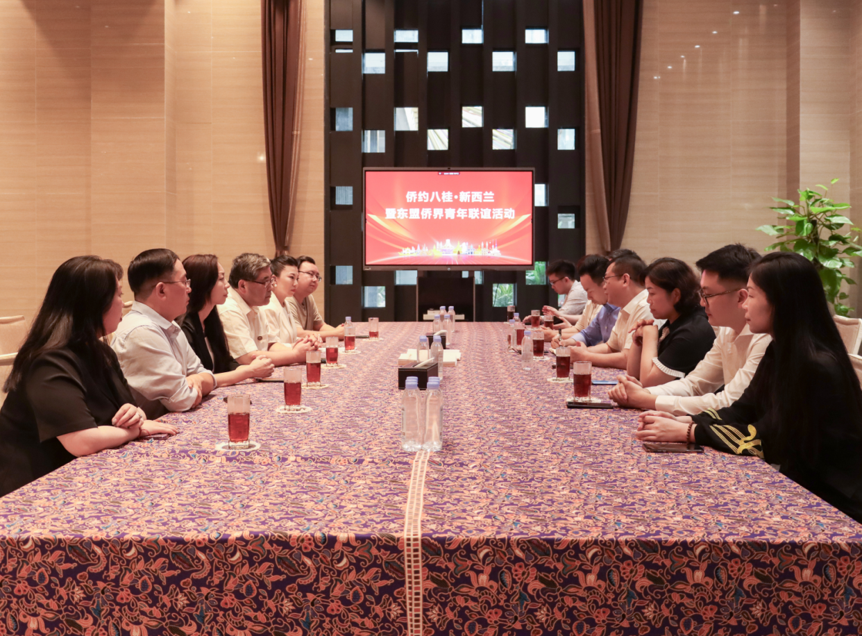 2024年5月15日,在廣西壯族自治區(qū)僑聯(lián)黨組成員、副主席秦偉鵬的陪同下,新西蘭中國國際貿(mào)易促進委員會和志耘會長率經(jīng)貿(mào)文化投資代表團到中國—東盟特色商品匯聚中心(簡稱“匯聚中心”)參觀考察并進行座談交流。中國—東盟特色商品匯聚中心總經(jīng)理林哲宇熱情接待了代表團一行。