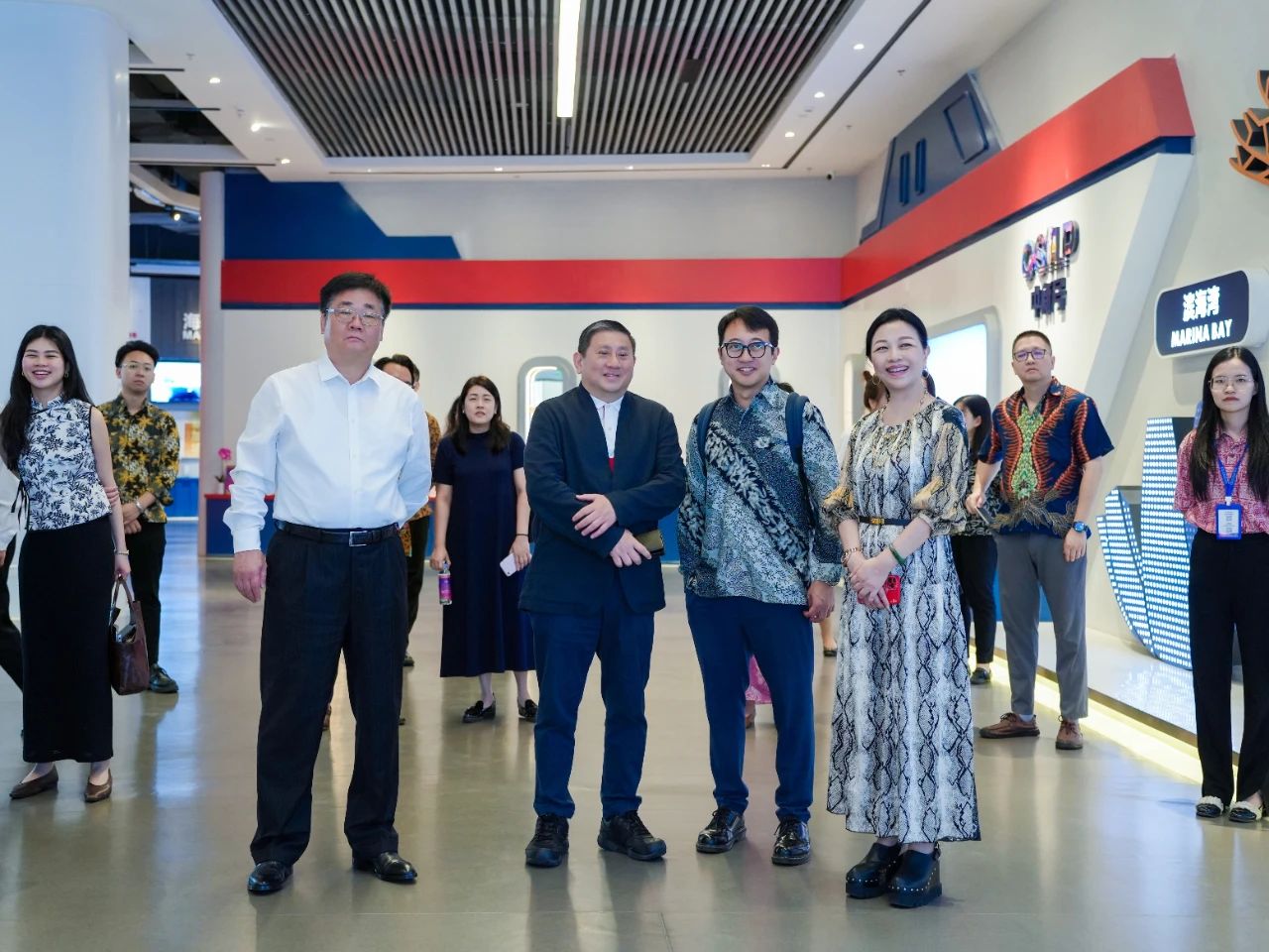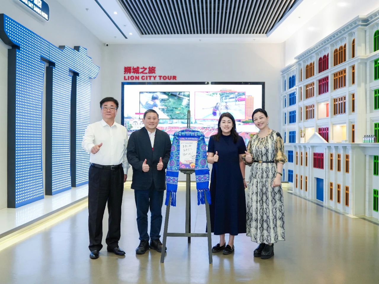 步入?yún)R聚中心,陳海泉大使便被新加坡展館門口的魚尾獅所吸引,特意駐足拍攝。進入展館后,考察組沉浸式體驗了璀璨星空走廊、垂直綠化的花園城市與組屋街區(qū)等場景,紛紛表示很開心能在廣西看到一個多維度呈現(xiàn)“獅城”獨特風貌的地方,漫步其中恍若回到新加坡,倍感親切。同時,考察組充分認可了匯聚中心線上線下相結(jié)合的創(chuàng)新理念,并就未來在經(jīng)貿(mào)、物流等領(lǐng)域的合作與匯聚中心團隊進行了交流并達成共識。