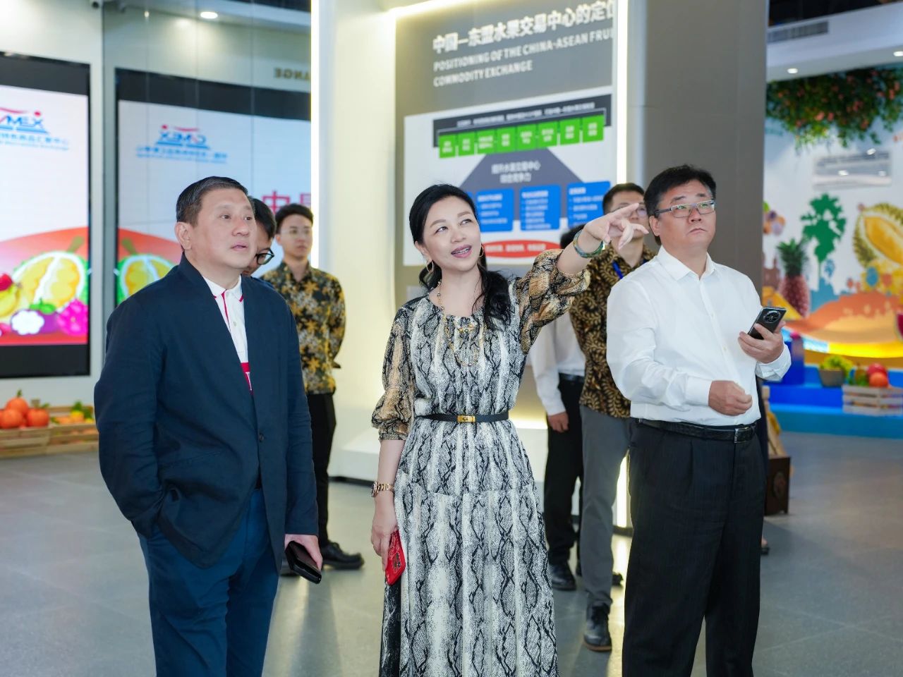 考察組還走進水果交易中心展廳,就中國與東盟水果貿(mào)易情況進行了溝通交流。陳海泉大使表示,此次到訪認識到了中國南北方水果的差異,也了解了廣西作為中國水果第一大省區(qū)的獨特優(yōu)勢,在廣西建設水果交易中心大有可為。新加坡雖不是水果主要生產(chǎn)國,但依托世界重要的轉(zhuǎn)口港基礎(chǔ)設施及先進的冷鏈物流體系,可在水果精深加工、先進保鮮技術(shù)等方面進行深化協(xié)作,希望借助水果交易中心,高效銜接中國與東盟水果產(chǎn)業(yè)鏈資源,助推更多優(yōu)質(zhì)果品通過新加坡更好地走向國際,共享全球廣闊市場。