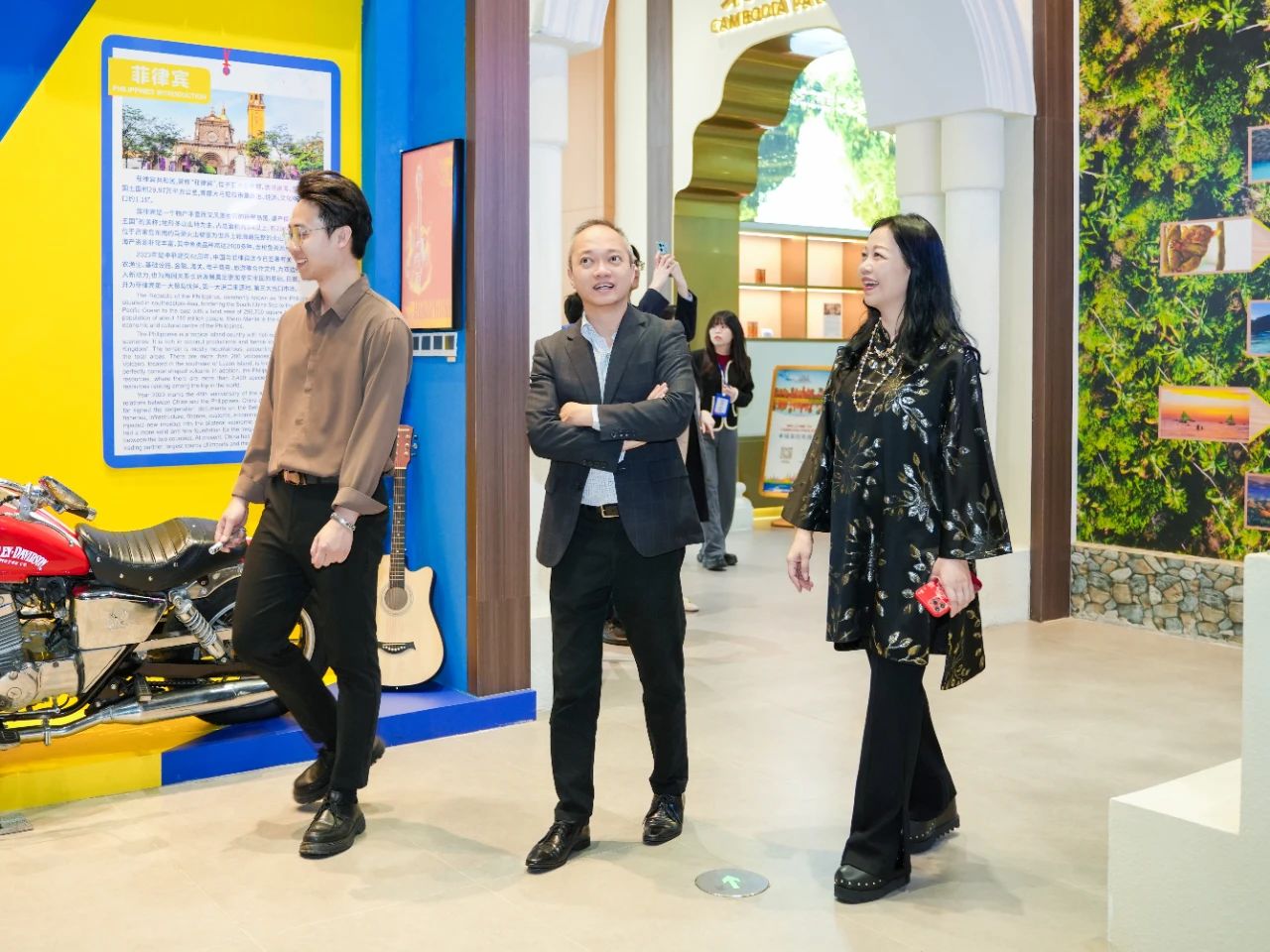福安來商務(wù)領(lǐng)事表示,一走進(jìn)匯聚中心,迎面而來的熟悉場景令他不禁想起首次到訪的情景。他指出,匯聚中心充分結(jié)合RCEP區(qū)域國家乃至“一帶一路”沿線重要國家的人文風(fēng)俗元素,完美融入每一個主題展館中,使得各館各具特色,令人印象深刻。尤其是菲律賓館,里面壯觀的沙丁魚風(fēng)暴、搖曳的椰林沙灘、原生態(tài)茅草屋與歡快的吉他,以及獨具菲律賓本國特色的窗戶樣式等,都精準(zhǔn)還原了當(dāng)?shù)氐娘L(fēng)貌,讓他倍感親切,仿若置身家鄉(xiāng)。他相信很多到訪匯聚中心的嘉賓都會與他有著同樣的感受——這里的美好一見傾心、再見難忘,如陳釀般令人回味悠長。